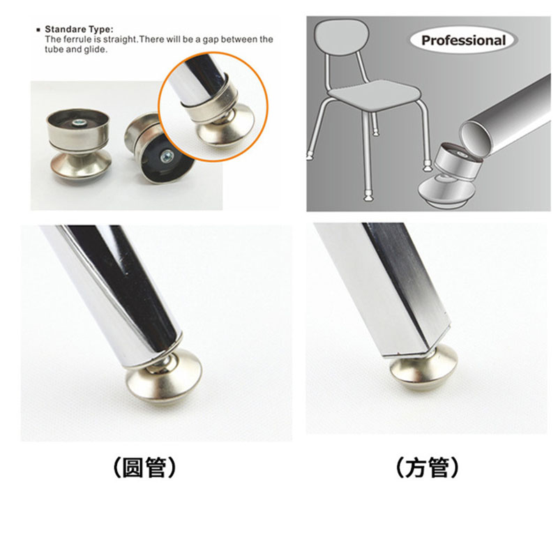 These swivel glides with beveled ferrule feature a smooth beveled ferrule and an outside holding clip to provide a sturdy grip on the chair or desk tubing. Glide grips leg with outside holding clip meaning it grabs the outside of the leg (see photo of clip). Glide has a 1.25" diameter nickel-plated nylon base with a decorative ferrule that fits over the outside of the leg. Swivel glides decrease floor scratching and increase the mobility of your school furniture. The easy to install design allows for a large quantity (such as a class room full of desks) to be completed quickly. Equipping your furniture with swivel glides will allow for an easy restructuring of your classroom when the new school year begins and aid well when having to move furniture for floor cleaning purposes. Chair glides are very popular in schools and institutions and move easily across smooth or carpeted floors. The glide freely swivels beyond 30 degree angle.