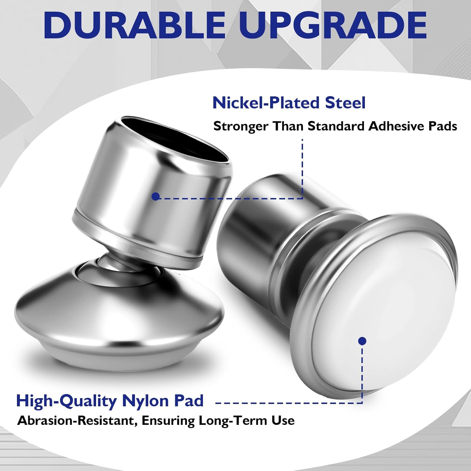 Durable Construction: made from nickel plated steel and nylon, these swivel chair glide offer strength compared to standard adhesive options; They are suited for high-traffic environments like schools or offices, ensuring longevity and reliability under frequent use conditions